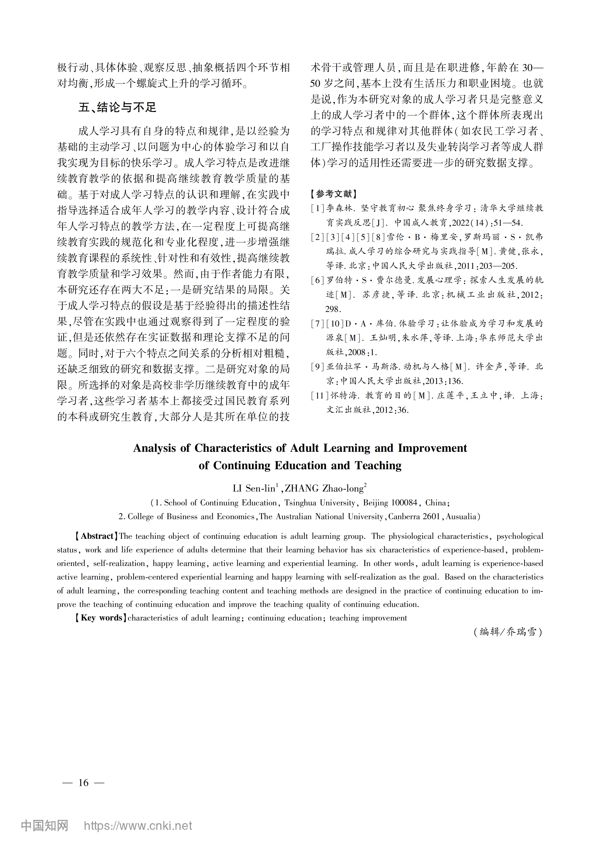 【学术论文】李森林:成人学习特点分析与继续教育教学改进